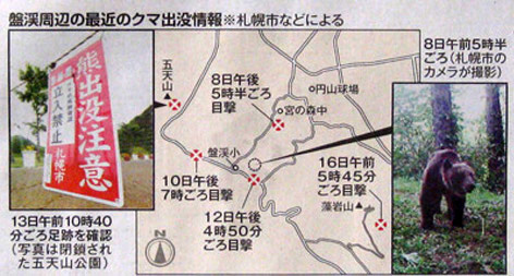 北海道の各地でヒグマの目撃が相次ぐ。