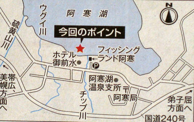 1月11日と13日は同じ場所で、阿寒湖の氷上釣りの上限である2㌔(推定300匹以上)の