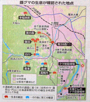 札幌市市街地に近い山間部では雌グマが繁殖を続け、