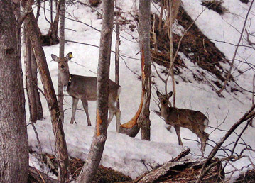冬場になると、相当数のシカが国道453号北側の急斜面周辺に集まり、越冬している。