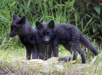 アカギツネは本来は茶色だが、黒い毛は毛皮用に人間が濃い茶色のキツネの交配を重ねて