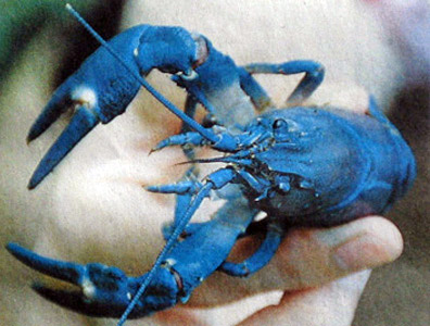 青いザリガニは標本のして保存される。